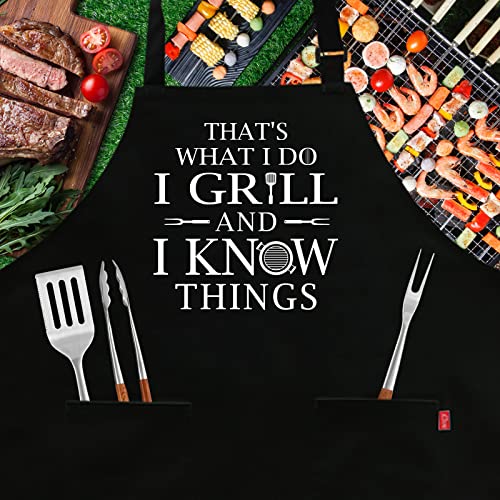 Grilling chef apron with 2 pockets can give you an amply place to hold into seasoning packets, meat thermometer, grill slips, recipe cards