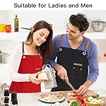 EXCELLENT QUALITY: Made of high density but breathable 100% cotton canvas materials, our Cross-Back Bib Apron for adults is soft to touch and easy to clean. Environmental protection dye, safe for you and your family. Waterproof fabrics always keep out waterdrops and oil stains. Wear-resistant heavy duty canvas workwear apron, XL catering apron machine washable.