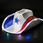 GiftExpress Light Up Patriotic Cowboy Hat – Red, White & Blue Sequin Cowgirl Hat w/Flashing LED – USA Western Rodeo Theme Party Costume for Women and Man Adult Size