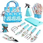 Floral Pattern Gardening Set: This garden kit contains everything you need for gardening work: trowel, transplanter, hand rake, cultivator, weeder, pruning shears, watering spray bottle, kneeling pad, cleaning cloth, garden gloves and tote organizer. The printed floral pattern design make these tools pretty and unique
