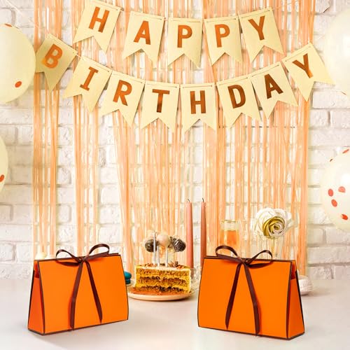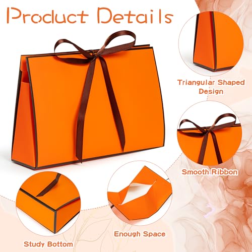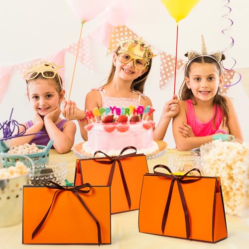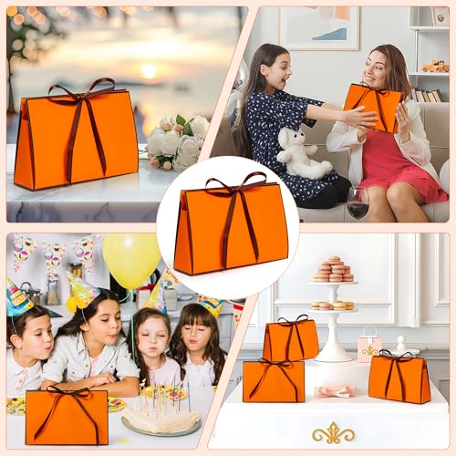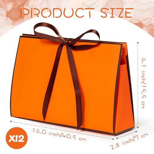 GQIRIL Orange Gift Paper Bags – 12PCS Large Size Wrap Bag Bulk with Ribbon, Orange Party Goodie Treat Box Set, Thank You Gift Wrapping Box for Diwali Fall Christmas Birthday Wedding 16 x 2.8 x 6.1”