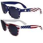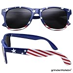 GET 2 Sunglasses in this bulk pack! – One in Blue Stars and Stripe, One in Regular Red, White and Blue! Patriotic Flag Print Sunglasses – Perfect for 4th of July! One Size Fits Most – Good for both Men and Women, Measures 5.7 inches wide (end to end) / 2.4 inches tall (top to bottom including frame) 100% UV 400 Protection from Harmful UVA/UVB Rays. Includes grinderPUNCH Microfiber Bag.