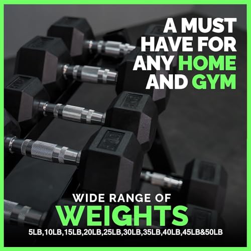 1. Get Fit with Dumbbell Set: Our versatile rubber hex dumbbell weight set with rack offers a wide range of weights from LB, 10LB, 15LB, 20LB, 25LB, 30LB, 35LB, 40LB, 45LB, making it perfect for beginners, professionals, and women looking to achieve their fitness goals. With a variety of weight options, it’s easy to customize workouts to your own needs!