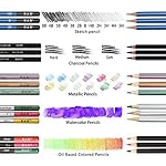 Drawing Supplies:72 Drawing pencil set include 12 color Watercolor Pencils,12 color Colored Pencils, 12 Sketch Pencils, 12 color Metallic Colored Pencils, 12 Charcoal Pencils,1 A5 sketch pad, Each pencil is marked with color name and model