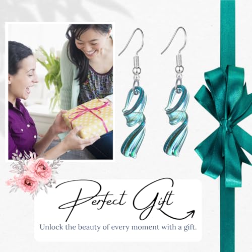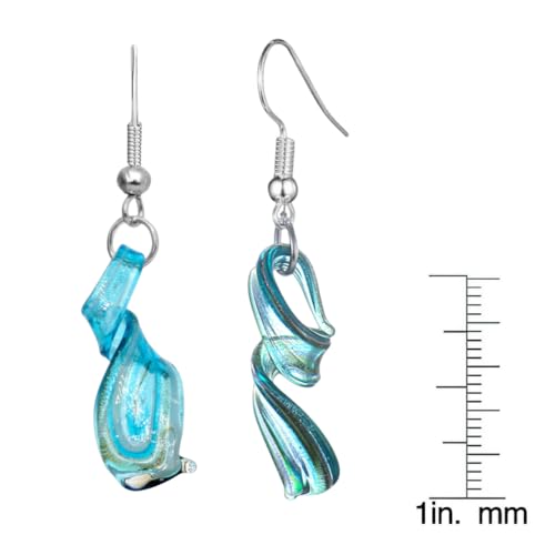 Handmade Murano Inspired Gorgeous Artist Made Twist Blue Glass Earrings Handcrafted Blown Hypoallergenic Artisan Lampwork Italian Style Jewelry Aqua