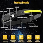 LIGHTWEIGHT & COMFORTABLE – The Rechargeable headlamp is composed of soft silicone and an adjustable elastic headband, suitable for adults or children. The product weighs only 2.47oz. Small size design can be folded and easily put into the pocket.