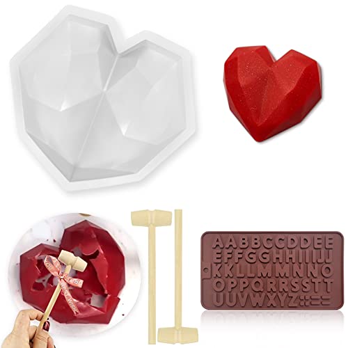 Breakable Heart Mold Set for Chocolate, Heart Silicone Molds with Hammers and Letter Mold Chocolate Molds for Valentine Candy Making