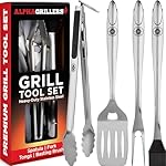 Alpha Grillers Grilling Accessories – Grilling Gifts for Men – BBQ Accessories Grill Tools Set with Spatula, Fork, Brush & Tongs – Outdoor Barbecue Utensils Gifts for Men Dad Him Boyfriend