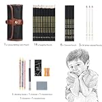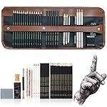 31 Drawing Sketching Pencils Kit, Portable Artist Supples Travel Case Set has Graphite, Charcoal, white color pencil, Blending Stump, gift for Adults Beginners for Drawing Sketch