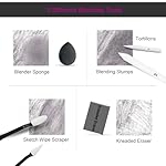 【Extra Drawing Sketching Supplies Kit 】This sketching set includes almost all the accessories for sketching and drawing,includes 8 blending stumps(#1-#8),4 tortillions(#1-#4),2 sketch wipe scrapers,20 replacement heads,1 blender sponges,1 kneaded and 1 vinyl eraser,1 sandpaper block,2 sharpeners,1 pencil extender,1 plastic ruler,1 art knife,1 masking tape,2 binder clips.These extras are essential for artists and beginners.