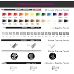 【Complete Drawing Pencils for Sketching】HIFORNY 126 pcs sketching & drawing set includes 24 premium sharpened graphite pencils(14B,12B,10B,9B,8B,7B,6B×2 ,5B,4B×2,3B,2B×3,B,HB×2,F,H,2H,3H,4H,5H),24 colored charcoal pencils,3 black charcoal pencils(soft,medium,hard),3 white charcoal pencils(soft,medium,hard),3 woodless graphite pencils(2B,4B,6B),3 graphite and 3 charcoal sticks,6 pastels sticks,4 willow charcoal sticks,3 gel pen(white/gold/silver),1 eraser pencil with brush,1 marker pen,1 dotting pen.Each pencil is marked with name and model,perfect for drawing,sketching,shading,layering,blending,and more.