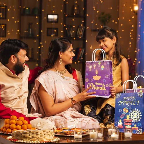 Colorful Design: Diwali theme material are printed on both sides of the gift bag, and the lighting design is very vivid. The gift bag looks very beautiful and can attract the attention of friends. Can be loaded with chocolates, candies, gifts, snacks, party gifts, etc., and distributed to guests