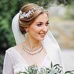 HUASAI Silver Jewelry Set Wedding Jewelry Sets for Brides Bridesmaid Rhinestone Crystal Statement Choker Necklace Earrings Bracelet Set Bridal Wedding Prom Jewelry Accessories for Women