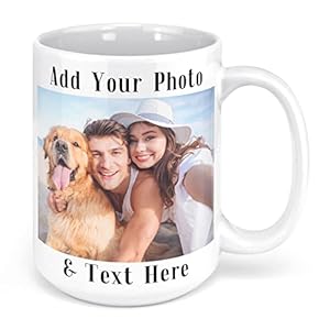 FULLY CUSTOMIZABLE FRONT & BACK: With both photo and text options, the sky is the limit with this ceramic coffee mug. Combine a favorite photo, logo or fun image with text that can include names, dates, inspiration quotes, inside jokes, or any kind of special message for him or her. Any pictures or images will be printed vividly in the colors that they are provided in, and the text options offer 20 different fonts in 17 different colors to choose from.