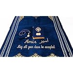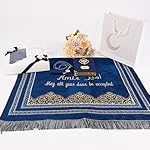 IEF Personalized Prayer Rug Prayer Beads Quran Islamic Gift Set, Ramadan Eid Hajj Umrah Wedding Birthday Mother’s Day Father’s Day Valentine’s Day Gifts (Navy Blue)
