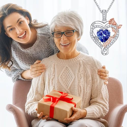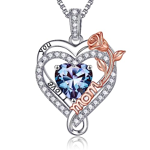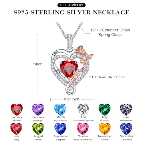 Iefil Birthstone Necklaces for Mom – 925 Sterling Silver Necklace for Women, Birthstone Jewelry, Birthday Gifts for Bonus/Step/New Mom/Mother in Law