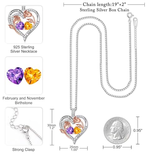 Iefil Birthstone Necklace for Women – 925 Sterling Silver Rose Heart Birthstone Necklace Birthday Anniversary Jewelry Gifts for Her Wife Mom Daughter