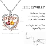 Iefil Rose Heart Double Birthstone Necklace Gifts for Wife Her Mom Women, Birthstone Jewelry Gemstone Birthday Gifts for Girlfriend Grandma Her Wife Women