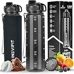 INEVIFIT 3-in-1 Sports Water Bottle 34oz 1L Hydration Tracking Water Bottles with Daily Time Marker BPA Free Tritan Leak Proof with Fruit Infuser Filter, Mixer Ball, Insulating Sleeve & Carrying Strap