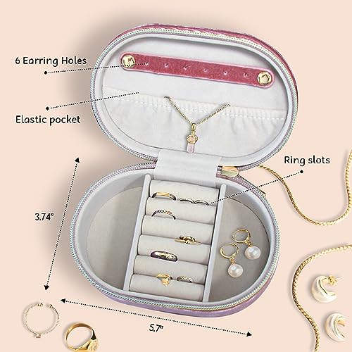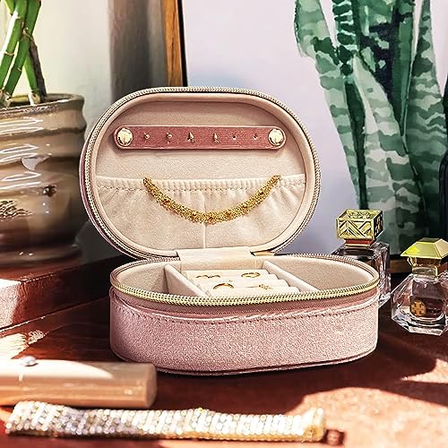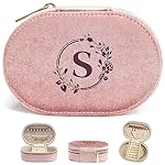 Initial S Oval Velvet Travel Jewelry Box for Girls, Jewelry Holder Organizer – Birthday Gifts for Women, Women Gifts for Christmas – Gifts for Her Friends Female Mom Sister Coworker Bridemaids Wife