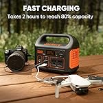 SPEED UP YOUR RECHARGEABILITY: It takes only 2 hours to recharge 80% battery of the power station through the wall outlet and 60W PD USB-C port simultaneously. You can also recharge your power station with an AC adapator when at home, through the car outlet during a road trip or simply use a Jackery SolarSaga 100.