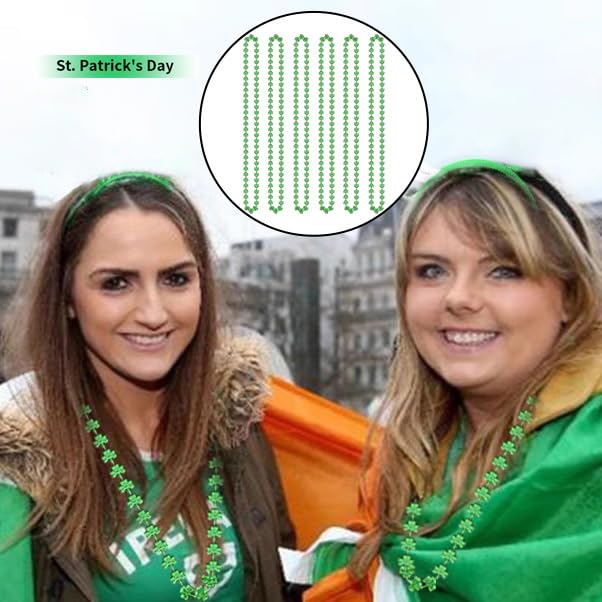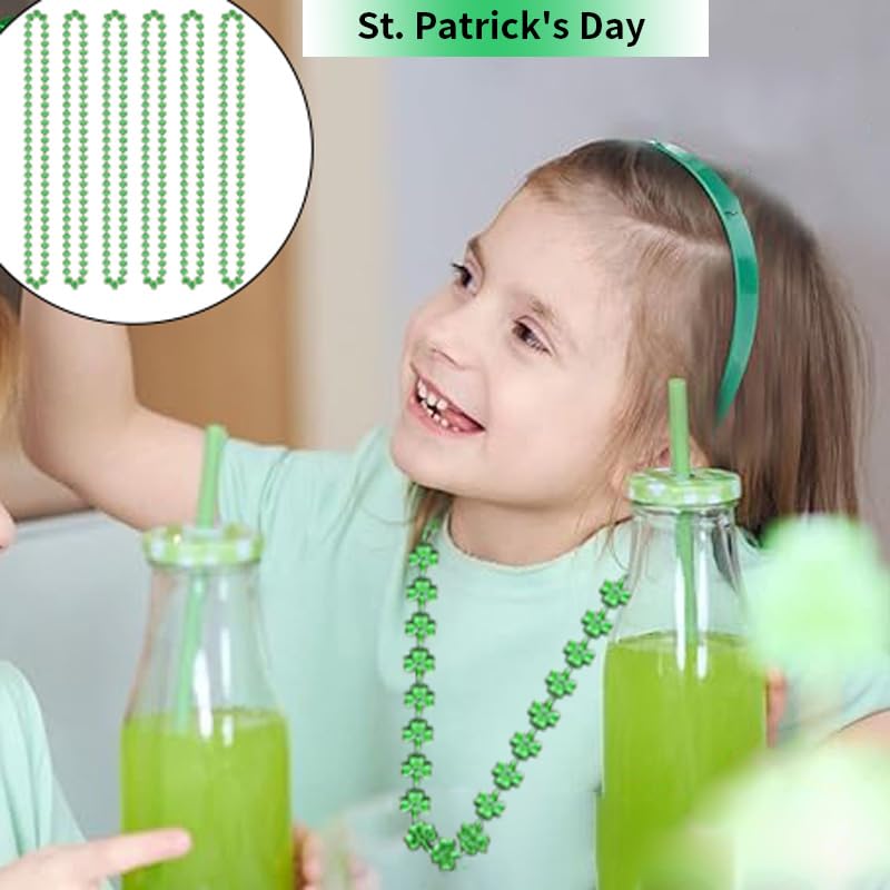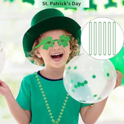JANEMO 6PCS Green Shamrock Necklace,St Patrick′s Day Shamrock Decorations, Green Shamrock for St Patricks Day Accessories,Costume Accessories