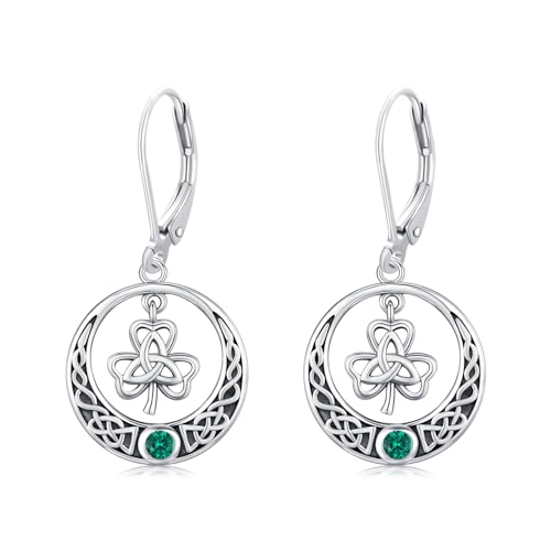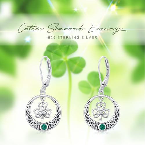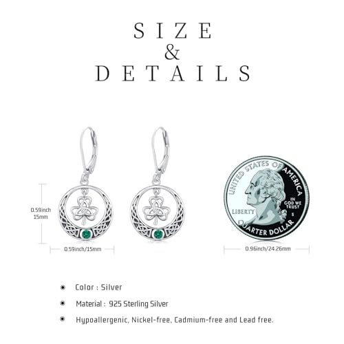 JUSTKIDSTOY St Patricks Day Earrings Gifts 925 Sterling Silver Four Leaf Clover Shamrock Earrings Irish Jewelry for Women Girls