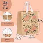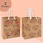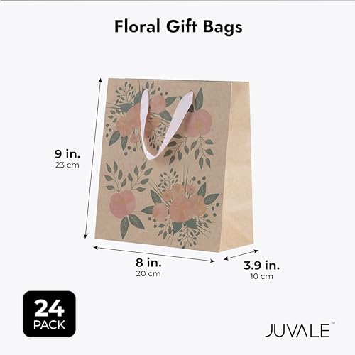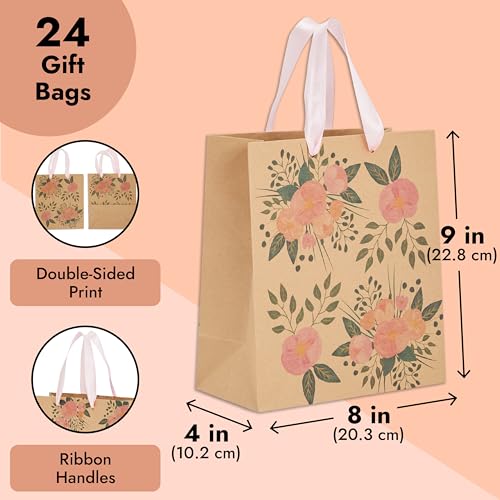 Juvale Floral Gift Bags – 8 x 4 x 9 in – Pink Ribbon Handles – Durable Paper with Reinforced Bottom – For Party Favors & Return Gift Bags