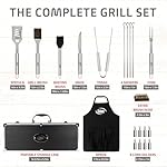 COMPLETE GRILL SET: This 21 piece set includes- 1 Apron – it will keep your clothes clean while kitchening and it has 4 handy pockets for tools to be stored in while grilling, 1 Tong, 1 Fork, 1 Knife, 1 Basting Brush, 1 Grill Brush,1 extra Grill Brush Head, 1 Spatula that has 4 functions, 4 Skewers, 8 Corn Holders, and a Portable Storage case. You will feel very Equipped with this Complete and Professional Grill utensil set that includes everything you need for Grilling.