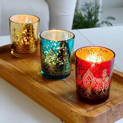 PARTY OR HOME DECOR – These beautiful tea light votives make beautiful home decorations or decor for Diwali, Deepavali, Indian Wedding decorations, Ganesh Chaturti or Pooja Decoration Items.