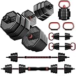 KeppiFitness Adjustable Dumbbell Set, 30/50/70/90 lb Weight Set with Connector Bar, 4 in 1 Workout Gear with Dumbbell, Kettlebell, Barbell, Push up Handle for Home Gym Fitness Exercise