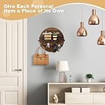 LEIRUOTM Key Holder for Wall, Key and Mail Holder Organizer with – Key Holder Wall Mount – Round Wooden Rustic Home Decor for Entryway, Mudroom, Hallway, Kitchen Office (Brown)