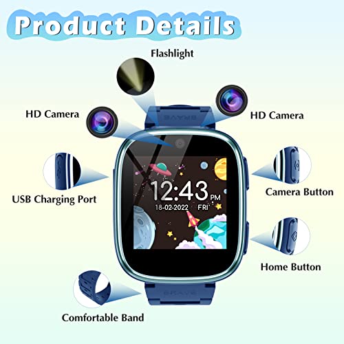 Kids Smart Watch Girls Boys – Smart Watch for Kids Game Smart Watch Gifts for 4-12 Years Old with 15 Games Camera Alarm Video Music Player Pedometer Flashlight Birthday Gift (Navy Blue)