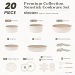 KIKCOIN Ceramic Cookware Set, 20 Pack Nonstick Pots and Pans Set with Detachable Handles, Healthy Frying Pans, Induction Dishwasher Oven Safe Kitchen Set, PFAS PFOA & PTFE Free