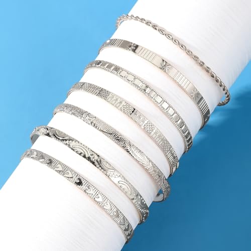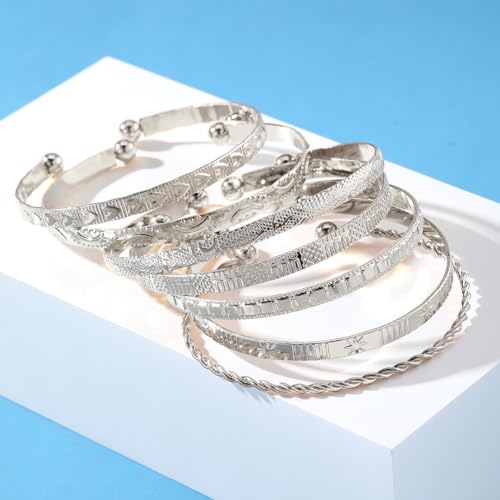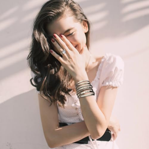 KISS WIFE Gold Bangles for Women, Open Adjustable Bangle Bracelets, Multi Layer Stackable Cuff Bracelet Set, Fashion Accessories Costume Jewelry Gift for Women
