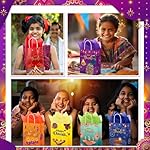 Sizable and Ideal Quantity: featuring 48 happy Diwali gift bags and 48 tissue papers, this fantastic Festival of Lights favors suffice for a large family gathering or gift exchange between friends; Sufficient quantity to ensure you don’t run out of these beautifully crafted Diwali gift bags, for a fun and love-filled Festival of Lights