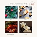POMEGRANATE & PINE – A nostalgic, festive scent blends with pine, zesty lemon, and pomegranate with fresh evergreens, finishing up with musky amber and sweet vanilla. This aroma adds warmth and depth to your home