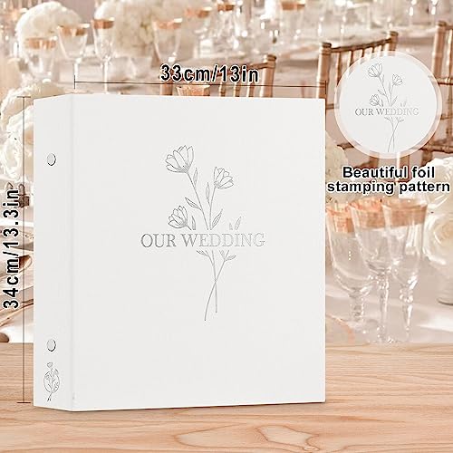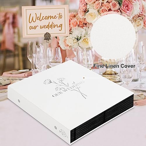 Lanpn Wedding Photo Album 4×6 600 Pocket Photos Slip in, Linen Cover Large Capacity Newlywed Marriage Album Hold 600 Horizontal Vertical Photos (Flower, White)