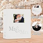 Lanpn Wedding Photo Album 4×6 600 Pocket Photos Slip in, Linen Cover Large Capacity Newlywed Marriage Window Album Hold 600 Horizontal Vertical Photos (Mr & Mrs, White)