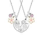 These heartfelt mother daughter necklaces are the perfect way to show mom just how much she means. Crafted from polished pendants in silver tone, each necklace features a unique heart charm engraved with “Mom” and “Daughter” on either side. Wearing matching pieces will help you feel close no matter how far apart life takes you. At just over an inch in size, the charms are delicate yet the sentiment runs deep. This set makes a traditional mothers day gift she’s sure to treasure for years to come as a reminder of your loving bond. For just a small gift, it represents your big appreciation for everything she does.