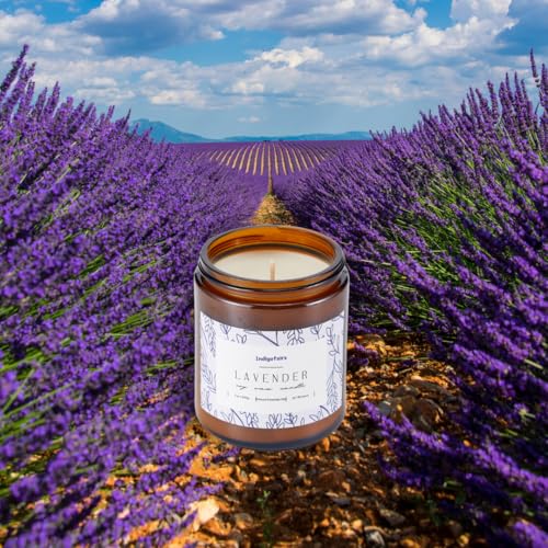 Indigofairs Lavender Scented Candle – 7oz Soy Wax Aromatherapy Candle for Stress Relief & Relaxation â 40 Hours Long Lasting, Natural Essential Oils, Gift for Women & Home Decor