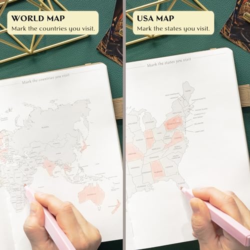 MARK THE PLACES YOU VISIT ON A MAP – This travel log book features a world map and a U.S. map to mark the countries and states you visit. Inside the travel photo album, you will also find a bucket list for all the destinations you want to see.