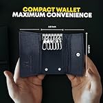 Li Fine Stitched Cowhide Leather Key Holder – Compact and Versatile Key Organizer Featuring 6 Key Hooks for Your Keys & Spacious Storage For Credit Cards And Money – Secure & Durable Key Case (Black)