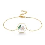 😊Bracelet Detail: Handmade item; Pendant height: 1.1 Centimeters; Pendant width: 1.3 Centimeters; Materials: 14K Gold Plated over brass,Lily of the valley, resin,gold flakes.Chain Detail:Stainless Gold Plated 6.5 inches with 2.3 inches extended chain and is perfect for everyday wear.