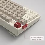 [Ergonomic mechanical keyboards]: stylish retro grey white mash up 75% layout, come with extra 16 red keycaps, double-shot injection non-slip suspension keycap, splash-proof design, durable metal panel enough to protect it from scratch, also firm kickstand feet adjustable typing angle.