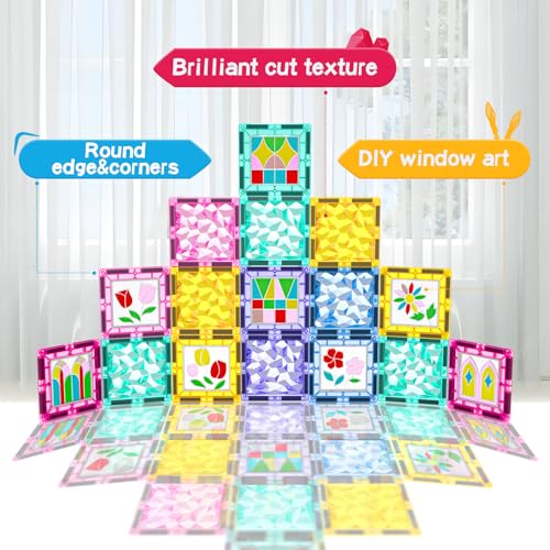 Magnetic Tiles DIY Window Arts and Craft Kit Kids Games Montessori Toys Toddler Kids, Magnet Building Blocks Set for Preschool Learning Classroom STEM Sensory Toys Gift for 3+ Year Old Boys and Girls