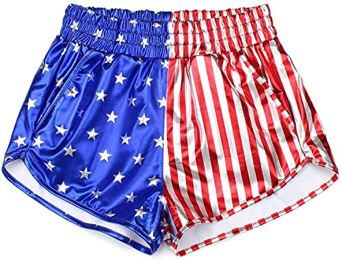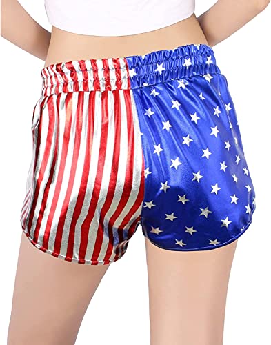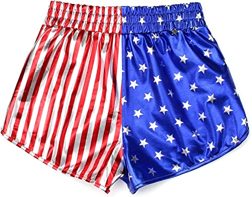 MAKARTHY Women’s Metallic Shorts Elastic Waist Shiny Sparkly Rave Pants