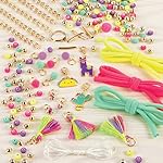 CREATE 10 UNIQUE BRACELETS: This Neo-Brite Chains & Charms kit lets girls craft 10 stylish cord and tassel bracelets. Includes 195 pieces with neon beads, gold chains, pompom and gem charms, perfect for trendy DIY jewelry making.