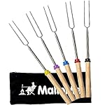 MalloMe Smores Sticks for Fire Pit Long – Marshmallow Roasting Sticks Smores Kit – Smore Skewers Hot Dog Fork Campfire Cooking Equipment, Camping Essentials S’mores Gear Outdoor Accessories 32″ 5 Pack