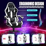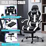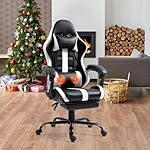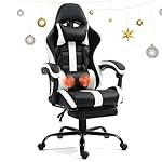 HOMHUM Massage Gaming Chair with Footrest, Ergonomic PU Leather Computer Chair w/Headrest and Lumbar, Height Adjustable, 360° Swivel Desk Office Chair, White
